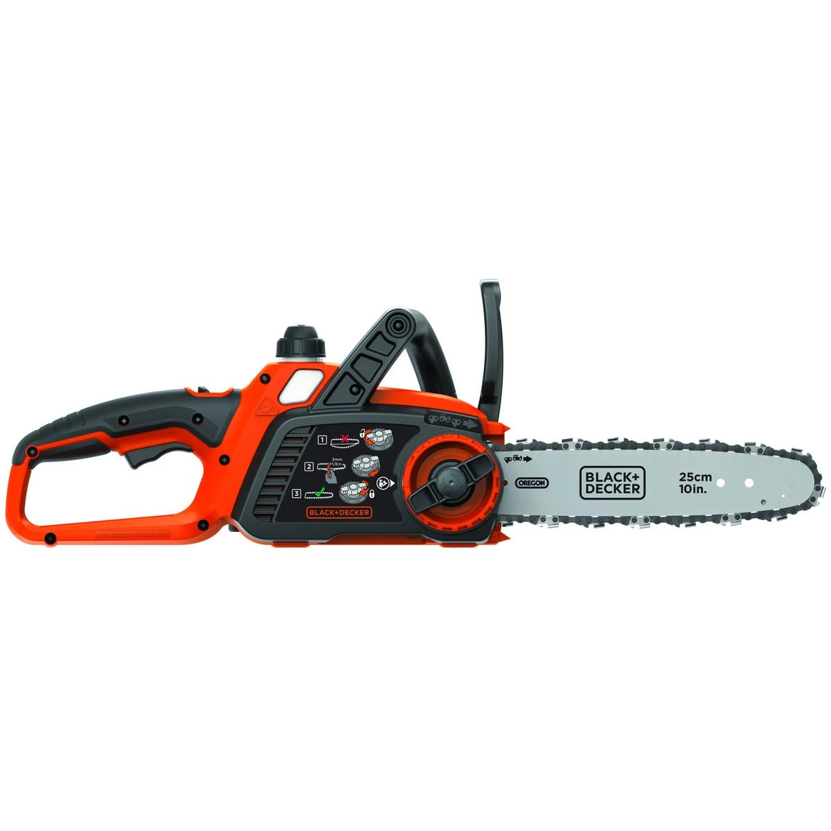 - 10-in Oregon low-kickback bar and chain for smooth and fast cuts