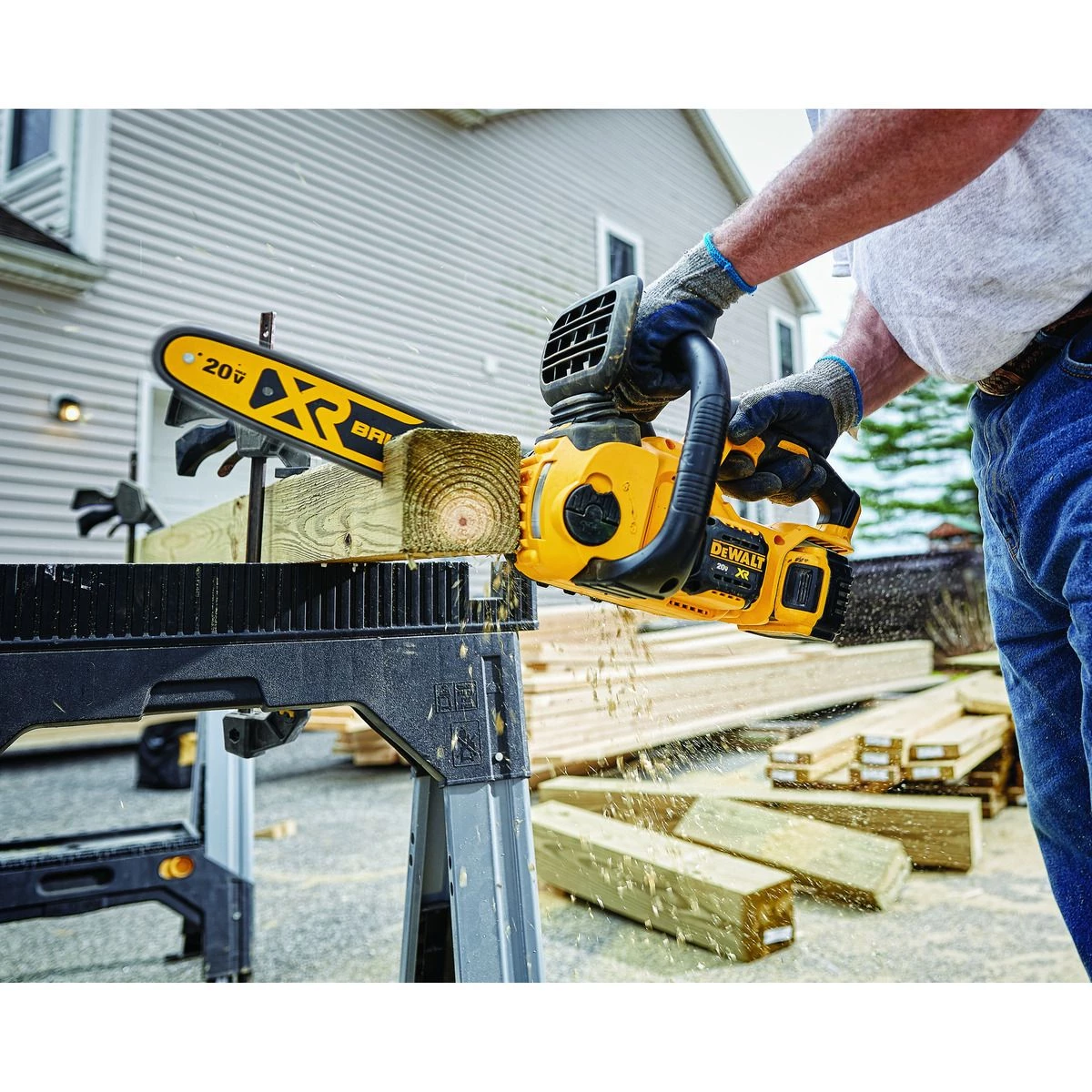 The DCCS620B brushless compact cordless chainsaw adds versatility to your 20V MAX* cordless system. It’s built to handle tough construction and outdoor jobs. Cut beams, rough-out openings, do demolition work, and more. The lightweight design maximizes user control. Brushless motor technology delivers extreme runtime and motor life.
