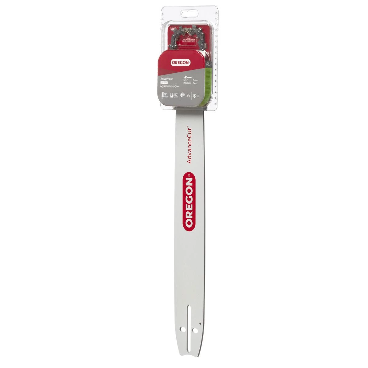 This 18″ guide bar and chain combination features a 3/8″ chain ideal for occasional commercial users and professionals. The low-vibration full chisel cutters offer top performance, smooth cutting and low kickback. The AdvanceCut guide bar features a small radius multi-rivet nose for good durability and control.