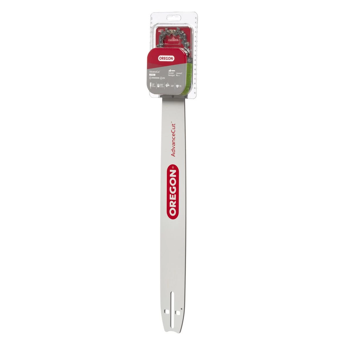 This 20″ guide bar and chain combination features a 3/8″ chain ideal for occasional commercial users and professionals. The low-vibration full chisel cutters offer top performance, smooth cutting and low kickback. The AdvanceCut guide bar features a small radius multi-rivet nose for good durability and control.