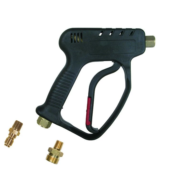 Get more done with the Valley Industries Universal 5,000 PSI Deluxe Spray Gun. This trigger gun assembly is designed to tackle high-power cleaning for gas and electric pressure washers up to 10.0 GPM and 5,000 PSI. Featuring a 3/8 inlet and outlet for quick connections to pressure washing hoses and lances. Connect to more hose styles with the following bonus fittings: FBSPP x 3/8 MNPT adapter, M22 x 3/8 MNPT plug and 3/8 QC x 3/8 MNPT plug.Get more done with the Valley Industries Universal 5,000 PSI Deluxe Spray Gun. This trigger gun assembly is designed to tackle high-power cleaning for gas and electric pressure washers up to 10.0 GPM and 5,000 PSI. Featuring a 3/8″ inlet and ” outlet for quick connections to pressure washing hoses and lances. Connect to more hose styles with the following bonus fittings: ” FBSPP x 3/8″ MNPT adapter, M22 x 3/8″ MNPT plug and 3/8″ QC x 3/8″ MNPT plug.